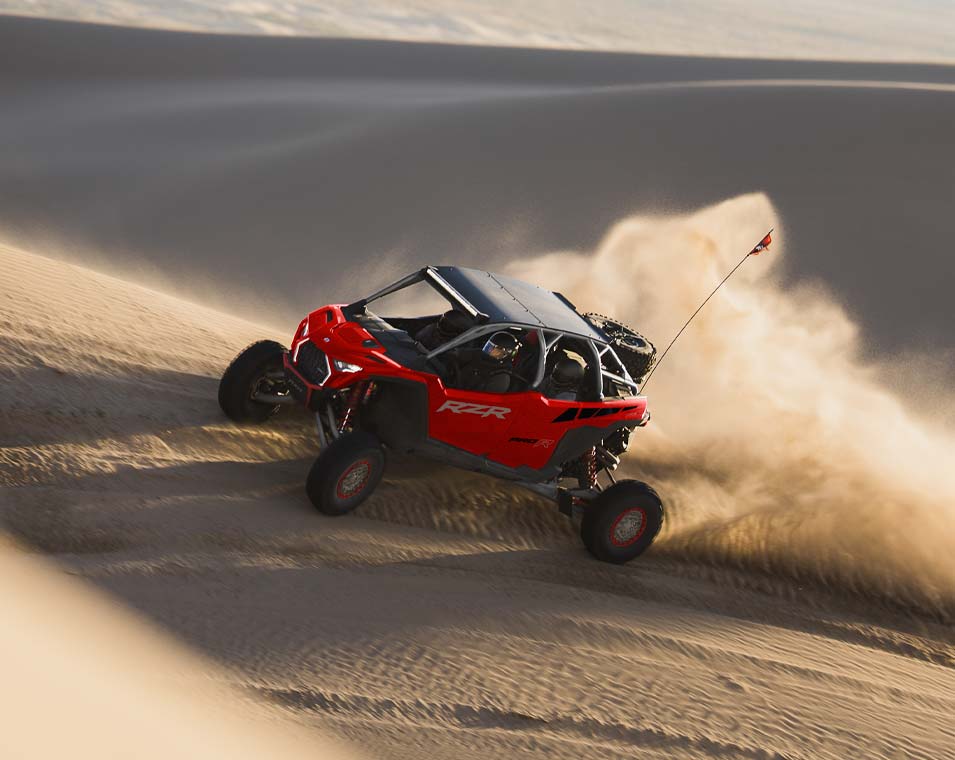 Out-thrill them all with an off-road beast designed to dominate. RZR Pro R delivers heart-pounding performance to defy deserts, conquer dunes and break records off road. Never place second again. With RZR Pro R, you always win.